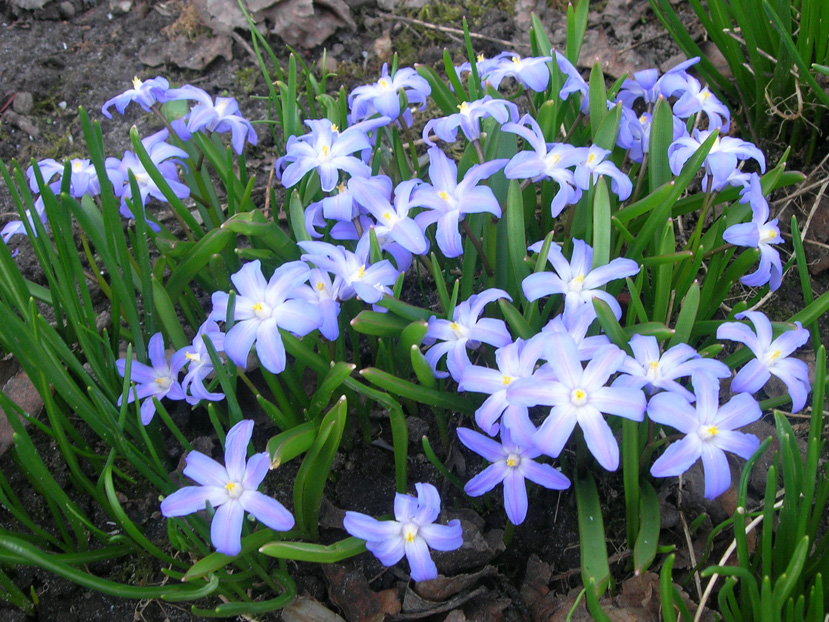 Bulbe à croissance basse (jusqu'à 10 cm) avec une bonne capacité de croissance. Préfère l'ombre ou la mi-ombre.Fleurs aux inflorescences bleues au cœur blanc comme neige. L'avantage du chionodox est qu'il n'a pas besoin d'être creusé pour l'hiver.