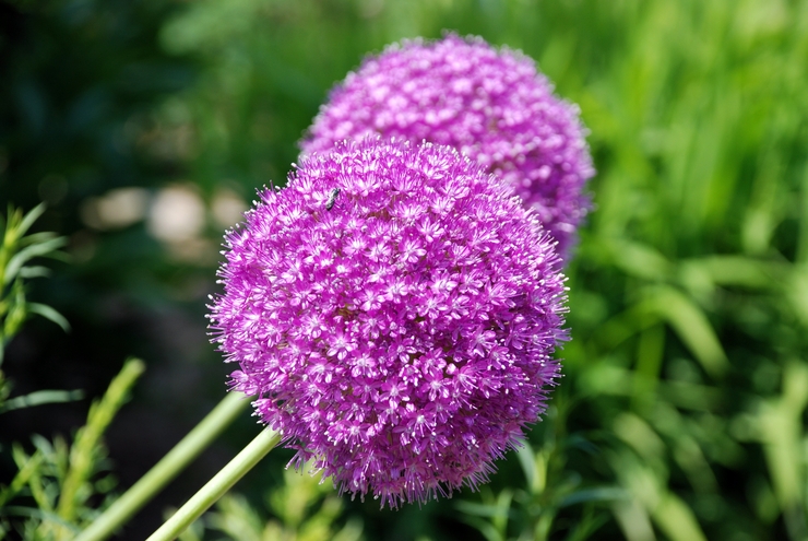 La fleur qui aime la chaleur est communément appelée un arc ornemental. Il ne se dissout qu'à la fin du mois de mai. Au bout de la tige, des boules duveteuses multicolores de couleur blanche, lilas, bleue ou rouge avec différentes nuances se forment. La hauteur de l'allium varie de 10 à 175 cm.