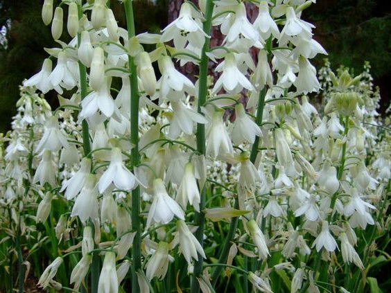 Plante haute jusqu'à 100 cm de haut, dont la structure ressemble à une cloche. En été, il est densément couvert de petites fleurs blanches comme neige. Galtonia n'aime pas l'ombre et ne tolère pas les courants d'air. Se sent à l'aise sur un sol fertilisé au compost. La jacinthe africaine ne tolère pas bien l'hiver et les bulbes doivent donc être déterrés.