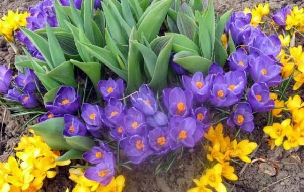 Les fleurs bulbeuses fleurissent au printemps, qui s'estompent rapidement. Du fait qu'elles ne laissent pas les plus belles tiges après la floraison, il vaut mieux ne pas les mettre comme élément principal de la composition.
