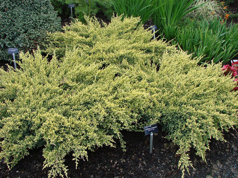 Buissons décoratifs à faible croissance d'une hauteur de seulement 0,7-0,8 m et d'un diamètre allant jusqu'à un mètre et demi. Ils se distinguent par des branches vert-bleu avec des pointes jaune citron. Le genévrier pousse confortablement dans un sol nutritif et bien drainé. Comme Dream Joy est de petite taille, il est préférable de le planter au premier plan.