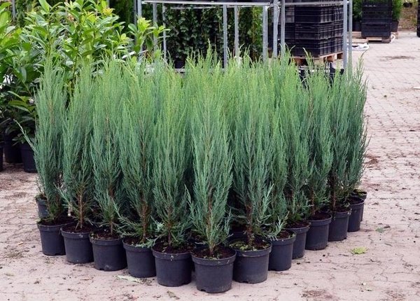 Une variété de genévrier de Virginie se caractérise par une forme colonnaire. Les branches de la culture poussent à partir de la base même et ont une teinte gris bleuâtre. À première vue, il peut sembler que le genévrier rocheux soit catégoriquement inadapté aux régions aux hivers rigoureux et aux vents forts. Cependant, en fait, il tolère fermement toutes les conditions environnementales défavorables. Le genévrier est très fermement tenu, car les racines de la plante s'enfoncent profondément sous terre. Par conséquent, même le vent le plus fort ne représente pas un danger particulier pour cette culture.