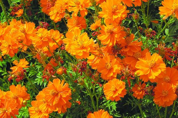 Kosmeya - a des fleurs brillantes, un grand feuillage ajouré. Il fleurit à partir de la mi-juillet et, s'il est planté au soleil, se plaît avec une abondance de fleurs. Esholzia - caractérisé par des buissons luxuriants de 50 à 60 cm de hauteur avec des inflorescences orange ou jaune rappelant le pavot. Fleurit au milieu de l'été, mais fleurit jusqu'aux premiers froids.