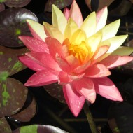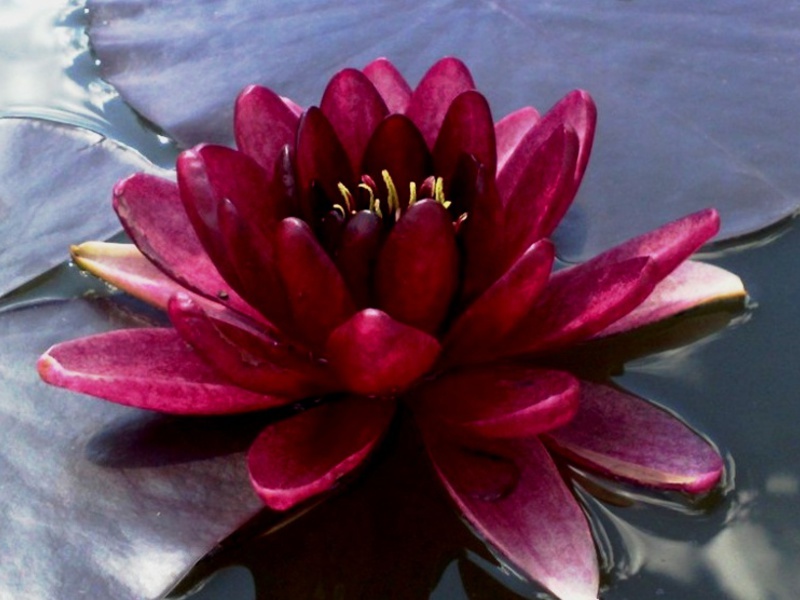 Herbe incroyablement belle avec une couleur inhabituelle. Les larges plaques de feuilles cordées sont vert foncé avec des taches carminées. Le nénuphar lui-même est petit, d'environ 17 cm, et se compose de 20 pétales.