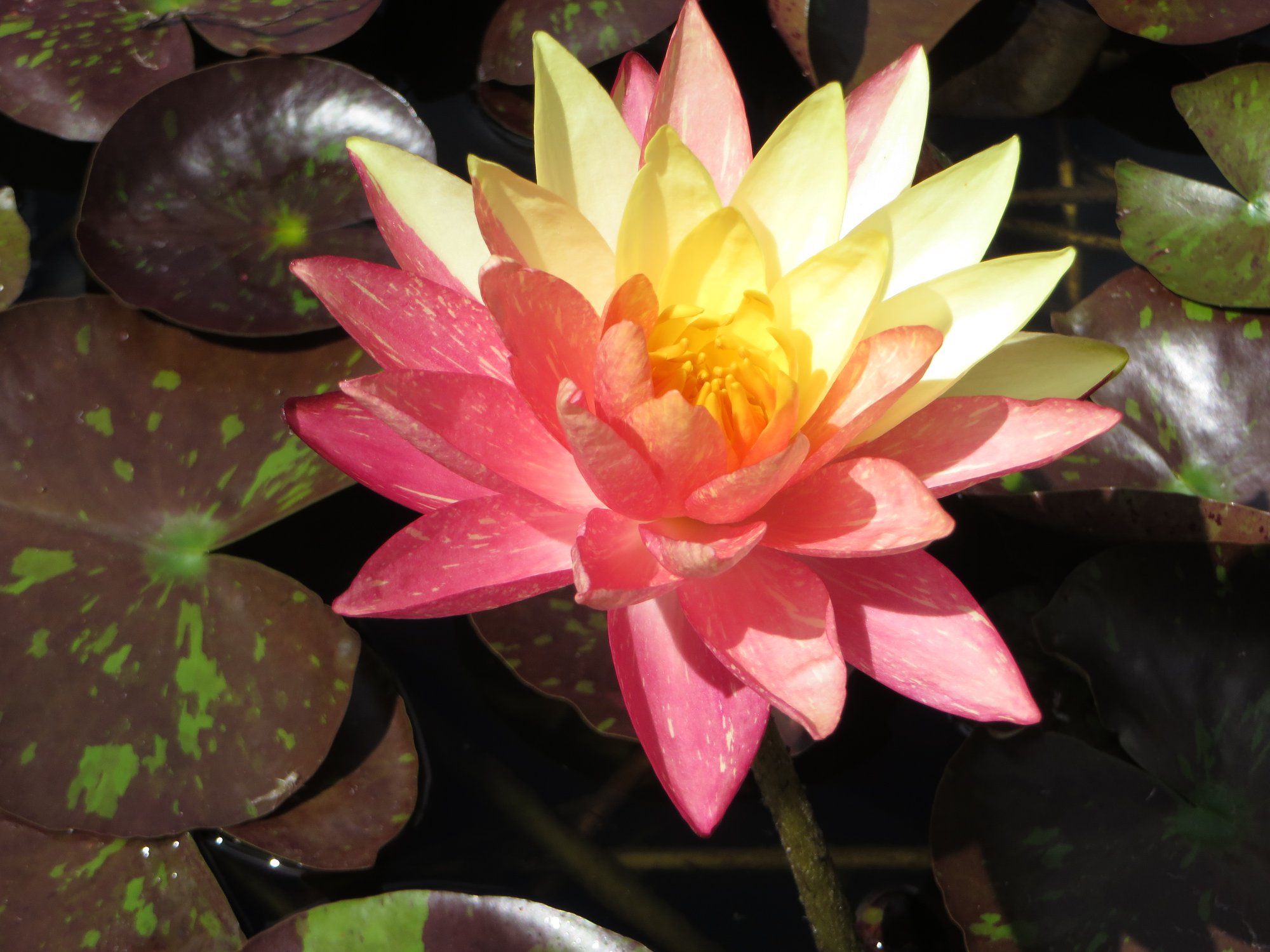 Pendant la floraison, la teinte caméléon change constamment de l'orange carotte au rouge bordeaux.