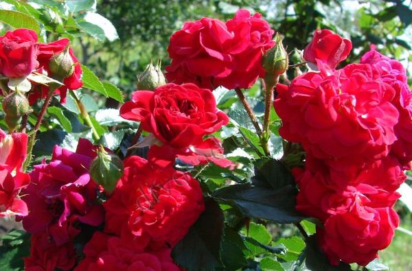 Le rosier couvre-sol diffère en ce que la largeur du buisson dépasse la hauteur. Des pousses rampantes couvrent l'espace autour du centre, créant l'apparence d'un tapis de fleurs. La longueur des pousses de cette plante peut dépasser 2 m.Au début de la période florifère, les antennes de la plante sont couvertes de nombreux beaux bourgeons. Ces bourgeons sont de taille relativement petite, dépassant rarement 5 cm de diamètre.La couleur de ces roses peut être variée - du blanc laiteux au rouge pourpre.