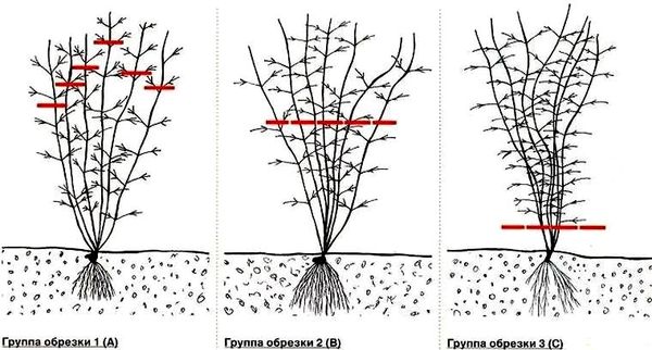 - La première comprend des variétés qui forment des fleurs sur les pousses de l'année dernière, par exemple Biryuzinka, Hegley Hybrid, Cardinal Rouge, etc. Seules les pousses endommagées, malades ou très faibles sont coupées de ces plantes, et les autres sont raccourcies à 1,5 m.