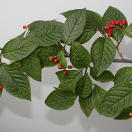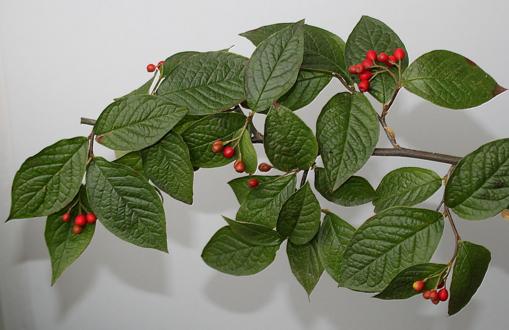 Les feuilles sont oblongues, arrondies, brillantes. En été, ils sont verts, en automne, ils acquièrent une couleur rouge vif. Les fleurs sont petites, les fruits sont rouge orangé, restent sur les branches pendant l'hiver.