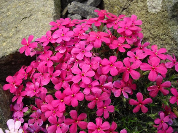 - Phlox Douglas. Court, jusqu'à 5 cm de hauteur seulement, idéal pour remplacer la pelouse. Les feuilles et les fleurs sont petites, mais il fleurit deux fois par saison. Les couleurs blanc, bleu, rose et lilas prédominent.