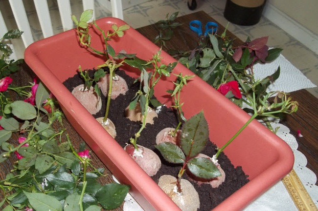 Il existe de nombreuses opinions sur la façon de planter des roses avec des boutures, mais vous devez d'abord préparer les boutures. Ils sont coupés à partir du milieu de la branche, il est préférable de ne pas prendre les sommets, car ils ne sont pas complètement formés et la base des pousses est généralement trop épaisse et il n'y a presque pas de bourgeons actifs dessus. La coupe inférieure est faite immédiatement sous le rein avec une inclinaison de 45 degrés et la coupe supérieure est à 0,5 cm au-dessus du rein supérieur. Toutes les feuilles et les épines sont enlevées en bas, les feuilles supérieures sont raccourcies d'un tiers. Vous devez couper avec un outil tranchant et propre - un sécateur ou un couteau avec une lame désinfectée, afin de blesser le moins possible la tige et de ne pas introduire d'agents pathogènes. Il est recommandé de traiter la coupe supérieure avec du permanganate de potassium ou de la paraffine, et la coupe inférieure dans une solution stimulante de croissance ("Kornevin" ou similaire).