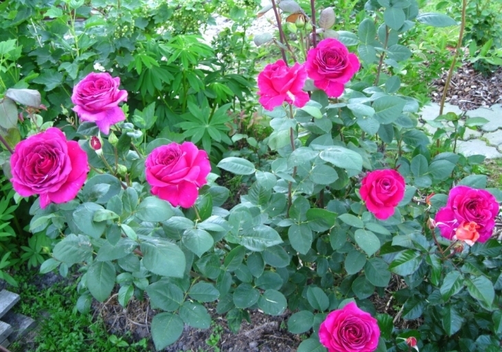 « Il y a quelques années, j'ai planté un petit buisson de rosier hybride Big Purple dans ma maison de campagne. La plantule s'est rapidement adaptée et a pris racine, pousse bien et se plaît avec une floraison riche. "