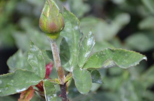 - L'oïdium est un revêtement poudreux blanc sur les feuilles, les pousses et même les bourgeons. Se produit dans des conditions de manque de soleil et d'épaississement abondant du rosier. Vous pouvez traiter la plante en utilisant des méthodes traditionnelles, parmi lesquelles les plus efficaces sont une décoction de prêle (100 g de matières premières pour 1 litre d'eau) et une solution de moutarde (2 cuillères à soupe de moutarde pour 10 litres d'eau). Pour un traitement plus chirurgical, les médicaments Tiovit Jet, Baktofit, Baylon sont utilisés.