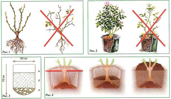 - La profondeur du trou pour le semis est de 50 cm, la largeur est de 60 cm, la distance entre les trous est de 1,5 m, les buissons grandissent.