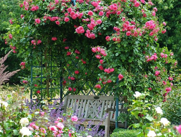 - Un rosier grimpant peut être utilisé pour décorer un kiosque de jardin