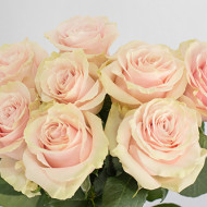 La variété a été développée en Equateur. Les fleurs sont peintes dans une teinte rose pastel mate avec une transition caractéristique vers l'olive jusqu'aux bords des pétales. Les bourgeons sont gros, assez denses.