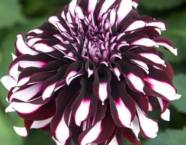 Le dahlia atteint un demi-mètre de hauteur et forme des inflorescences exceptionnellement belles. Ils ont une teinte pourpre, qui coule doucement vers le cœur en jaune pâle. De plus, les pétales se caractérisent par une structure frangée, ce qui confère à la plante un charme particulier.