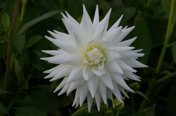 Le dahlia se caractérise par ses fleurs blanches comme neige. La hauteur de la tige atteint 50-70 cm.