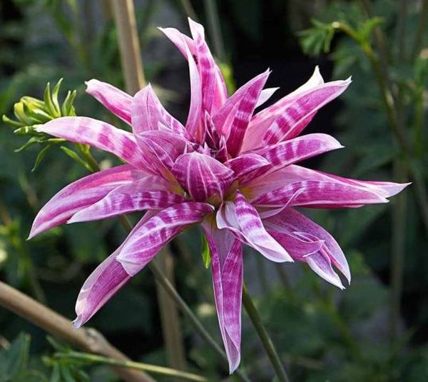 Une plante très originale dont les fleurs décoreront n'importe quel bouquet. L'arbuste est de taille moyenne, avec de grandes inflorescences. La variété se caractérise par des pétales incurvés et une couleur rose avec des rayures blanches.