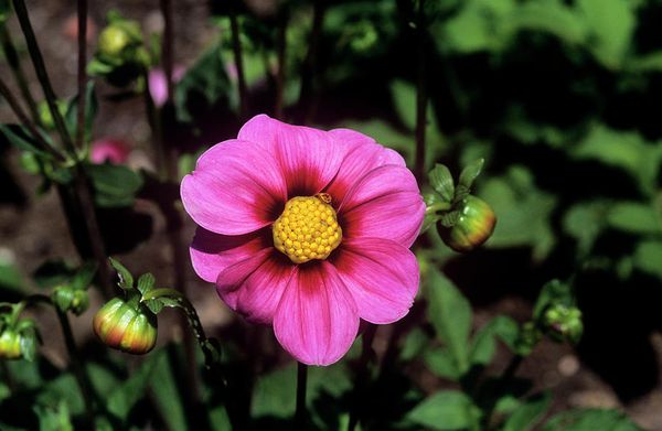 Le dahlia est similaire au précédent, a une hauteur de tige moyenne et de petites fleurs. Les nuances de l'inflorescence vont du rose au violet foncé.