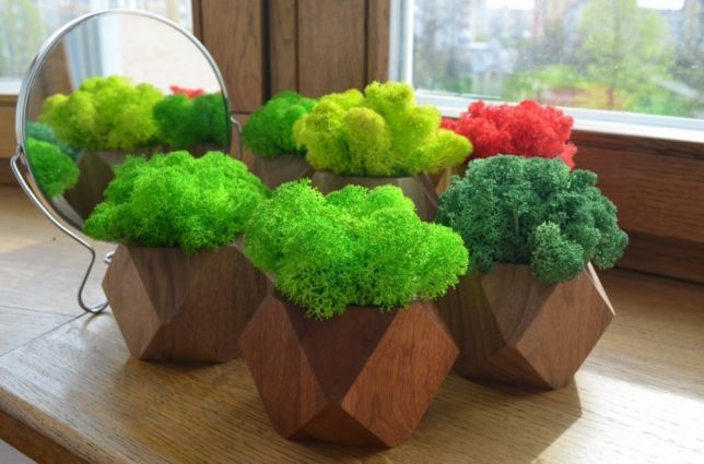 Même la mousse (principalement scandinave) est entrée en action. À l'aide de ses formes durables, les pièces sont aménagées et décorées. La mousse fragile ne convient pas au revêtement de sol, mais dans diverses compositions végétales verticales et horizontales (jardin d'été, terrarium), elle semble très harmonieuse.