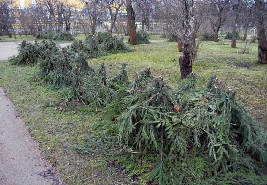 Deuxièmement, le matériau de protection empêche les branches de se casser sous le poids de la neige qui s'y trouve.