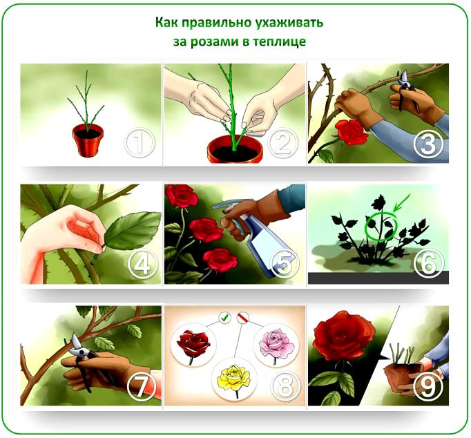 Avant de planter des roses, assurez-vous d'enrichir le sol de votre serre. Cela se fait avec de la tourbe, de la molène et du superphosphate.
