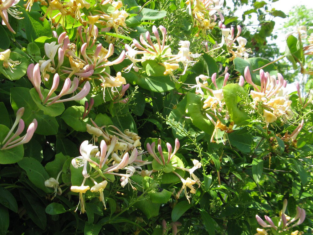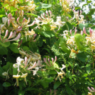 - Chèvrefeuille. Vivace, le feuillage tombe en automne. Il pousse jusqu'à 6 M. Période de floraison - mi-mai, durée - 20 jours. Les fleurs sont remplacées par des fruits verts, qui deviennent alors rouges. Résistant au gel.