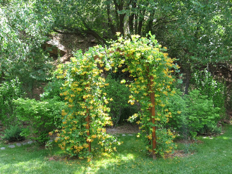 - 7 Utilisation du chèvrefeuille frisé dans la conception du jardin