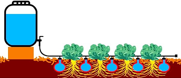 - méthode goutte à goutte. Elle est considérée comme la meilleure solution.Il peut être utilisé sur tout type de site. Un dispositif spécial vous permet d'utiliser l'eau de manière très économique. Puits, puits, etc.; peuvent être utilisés comme source d'eau potable;