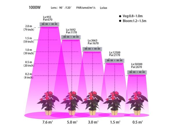 Pour que les plantes poussent pleinement, il est souhaitable qu'elles fournissent un éclairage de l'ordre de 10 à 15 000 lux. Cette valeur est prise en compte lors de l'achat de LED.