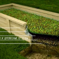 Cette option est un fossé creusé, à partir duquel le gazon et la terre sont retirés et la matière organique est remplie. Le niveau supérieur du lit peut être au même niveau que le sol ou légèrement surélevé. Ici, la composition du sol joue un rôle dans le choix de la première couche: avec un sol argileux, du sable grossier est versé sur le fond, avec de la tourbe - de la sciure de bois.