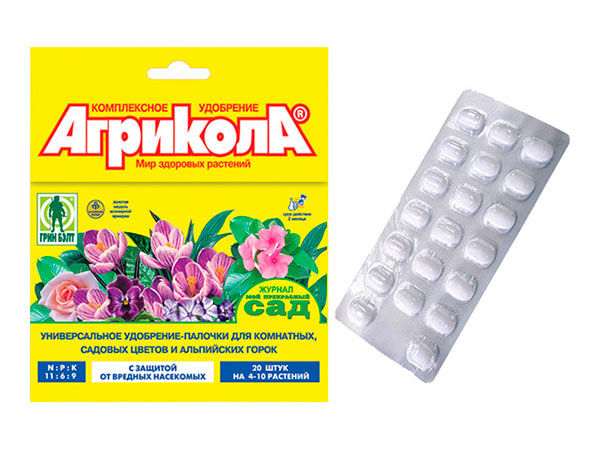 La façon la plus simple d'utiliser des engrais est faite sous forme de bâtons. 20 bâtons dans un emballage sont conçus pour 20 plantes. Il suffit de les planter dans le sol à côté du système racinaire et pendant 2 mois la plante recevra l'alimentation nécessaire. De plus, l'utilisation de cet engrais devient une excellente prévention de la pourriture des racines.Agricola ne contient pas de chlore, n'altère pas l'acidité du sol et empêche l'accumulation de nitrates par les plantes. Le top dressing peut être appliqué sous les racines, simplement en arrosant des fleurs ou des légumes, ou vous pouvez pulvériser la partie moulue - les composants de la préparation sont complètement absorbés par toutes les parties des plantes. La vinaigrette foliaire stimule la croissance de la verdure, la rend plus forte, augmente la résistance aux maladies, aux ravageurs et aux facteurs environnementaux défavorables.
