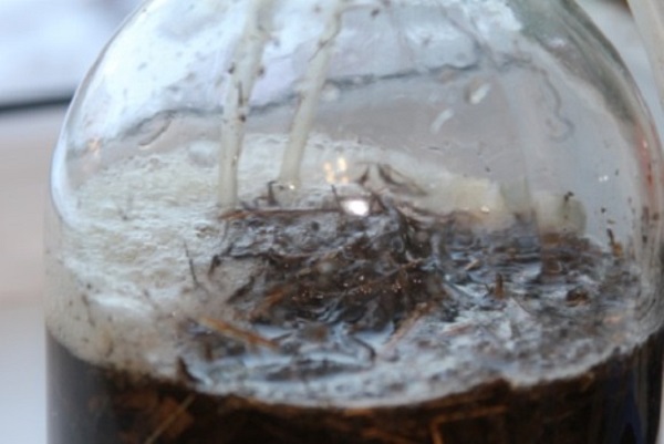 Ayant reçu une nutrition supplémentaire avec une source de sucres, les micro-organismes commencent à se multiplier rapidement dans des conditions d'accès actif à l'oxygène. Un compresseur conçu pour les aquariums avec deux buses est utilisé pour l'aération. En une journée, le thé de compost fini devrait sentir le sol frais de la forêt printanière. S'il a une odeur putride désagréable, il ne doit pas être utilisé pour fertiliser les plantes. La préparation ainsi préparée peut être utilisée dans les quatre heures.