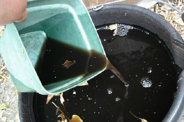 Le thé de compost concentré est utilisé pour l'alimentation des racines. De plus, il est versé dans le sol directement à proximité des plantes. En s'infiltrant dans les profondeurs, la solution nourrit les racines des substances nécessaires à un développement optimal. Les pluies n'ont pratiquement aucun effet sur cette alimentation.