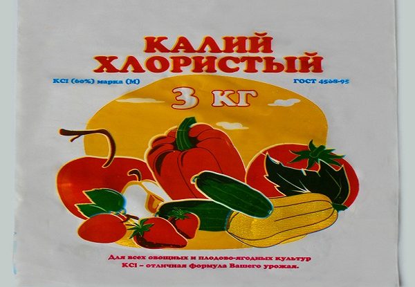 - à l'automne, fertilisez le sol avec du chlorure de potassium à raison de 100-200 g / 10 m². superficie, pour une application au printemps, le taux est de 25-35 g / 10 mètres carrés;