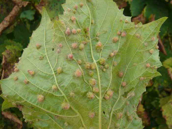 L'une des maladies fongiques les plus dangereuses pour le raisin, visible sur les photos et les images. Cette maladie très désagréable a été introduite sur le territoire de notre pays en provenance d'Amérique du Nord. Si vous ne prenez pas de mesures pour lutter contre le mildiou à temps, vous risquez de perdre une plus grande partie de la future récolte. Les signes d'une telle maladie sont la présence de taches jaunes et huileuses transparentes à la surface des feuilles.