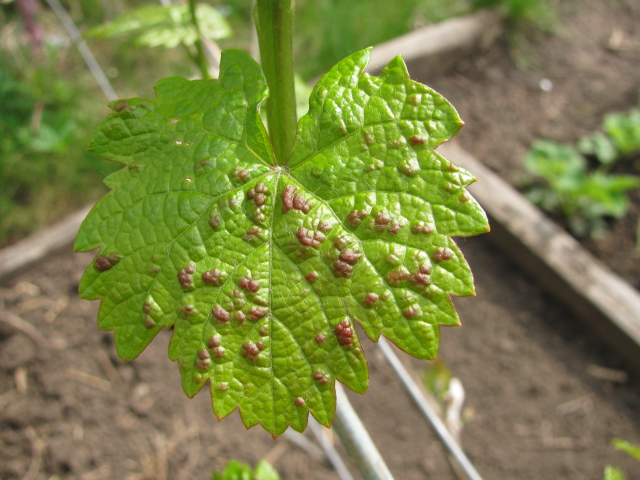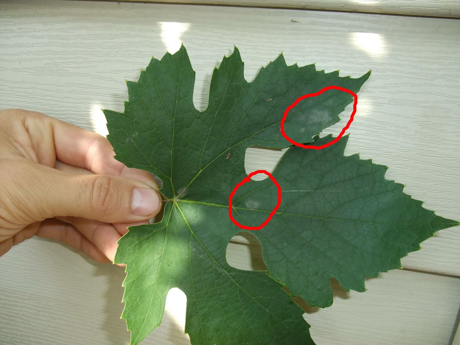 Par temps humide et chaud, du duvet de champignon blanc se forme rapidement sur la face inférieure. Un peu plus tard, les inflorescences atteintes par la maladie deviennent brunes et sèches. Les baies qui apparaissent deviennent bleuâtres, après quoi elles se transforment en baies brunes ridées, ce qui est clairement visible sur la photo.