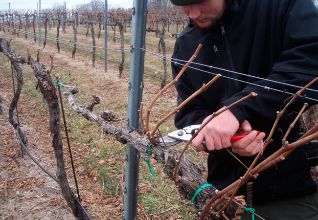 Si vous ne vous occupez pas de la taille opportune du buisson, vous pouvez obtenir une quantité abondante de masse verte et de pousses et une récolte maigre. Par conséquent, à partir de la deuxième année, vous devez tailler la vigne à l'automne, en gardant de 6 à 10 yeux. Et en été pour pincer les beaux-fils. Il est préférable de supprimer complètement les beaux-enfants du deuxième ordre.