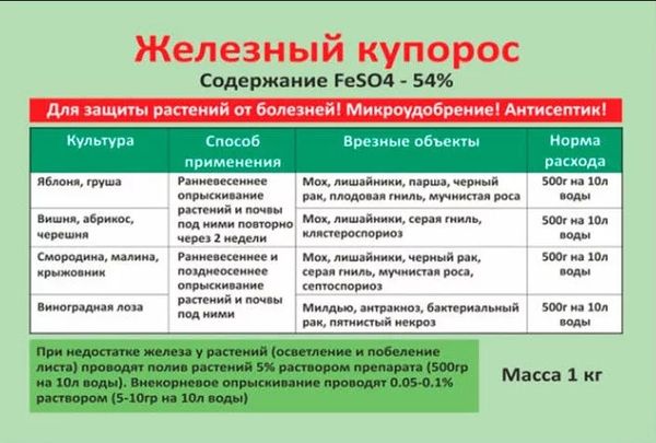 Gardez à l'esprit que la pulvérisation des raisins est généreuse : un arbuste aura besoin jusqu'à 2 litres de produit dilué dans de l'eau. Il est important de prendre au sérieux le processus de préparation d'un tel médicament: suivez strictement les instructions, n'oubliez pas de porter une combinaison de protection et un masque lorsque vous travaillez avec du sulfate de fer.