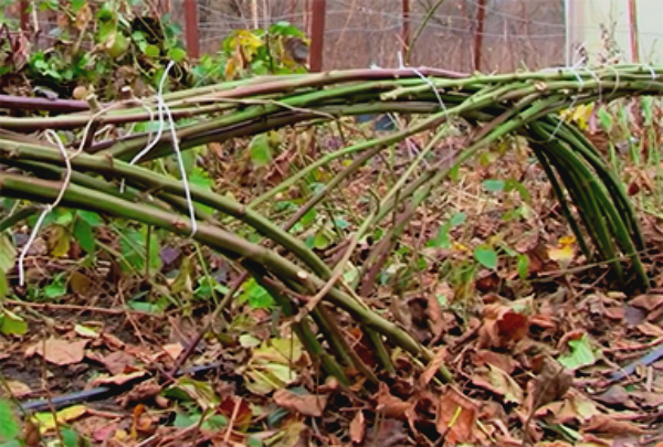 - Retrait du support. Les pousses de la mûre rampante peuvent avoir une longueur impressionnante (4 à 10 m), elles sont donc retirées du treillis avant l'abri, enroulées ou soigneusement pliées.