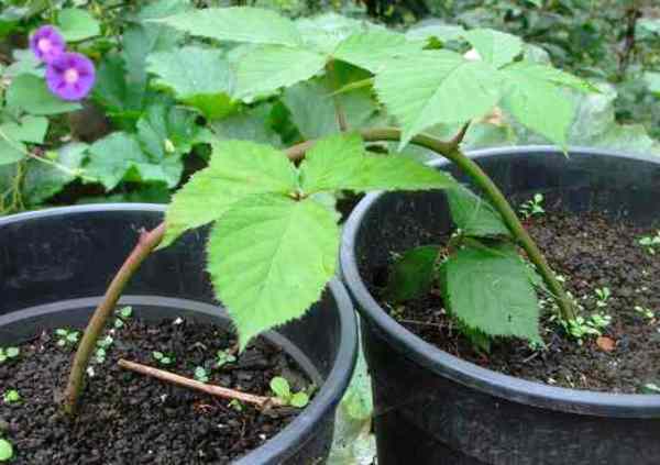 Et vous pouvez même plus tard à l'automne creuser dans le haut de la jeune pousse, couper les bourgeons apicaux, organiser les mêmes soins et planter de nouvelles plantes dans un endroit permanent au printemps, après la fonte du sol - quand ils plantent habituellement mûres sur le site. Pour accélérer le processus, une brindille est légèrement coupée ou rayée sous chaque bourgeon. Lorsque les mûres sont multipliées de cette manière, par marcottage, la branche est ajoutée goutte à goutte, sans la couper du buisson mère.