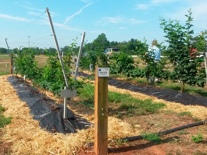 Il existe même des treillis pivotants mobiles, dont la fabrication prévoit une inclinaison des deux côtés de la rangée pour un éclairage ciblé du soleil à tour de rôle sur différents côtés du buisson. Avec le début de la floraison, le cadre est tourné de sorte qu'il devienne presque parallèle au sol, plus de fleurs et de baies se forment de ce côté. À mesure qu'il mûrit, il s'élève vers une position verticale. Sur cette base, un système de récolte mécanisée a été développé aux États-Unis : la partie mobile est d'abord tournée par les fleurs vers le haut vers le soleil, et lorsque les baies mûrissent, elle se tourne vers la récolteuse mobile, qui enlève les baies.