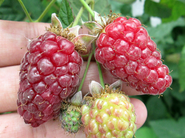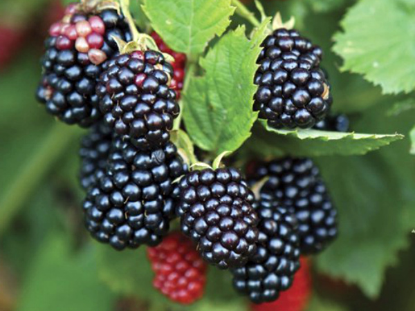 De début juillet à mi-août, un hybride assez nouveau et complètement merveilleux de mûres et de framboises "Buckingham Tayberry" plaît avec ses fruits. Ses longues baies rouges atteignent 8 cm de longueur et 15 g de poids, elles se distinguent par un arôme puissant, un goût riche avec une acidité prononcée.