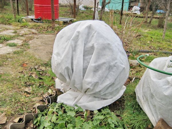Pour abriter les plantes, il est préférable d'utiliser des branches d'épicéa - d'une part, cela garde bien la chaleur, de l'autre, cela laisse passer l'air. Une bonne option serait la toile de jute, saupoudrée d'une couche de neige sur le dessus.