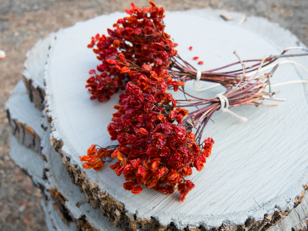 De tels bouquets avec des fruits entiers brillants peuvent être suspendus dans une pièce fraîche - sous-sol, grenier, balcon, afin de cueillir la bonne quantité de baies pour le thé, la compote, la gelée, la boisson aux fruits ou la tarte au besoin. Et le reste s'accrochera magnifiquement, attendant dans les coulisses pendant plusieurs mois.