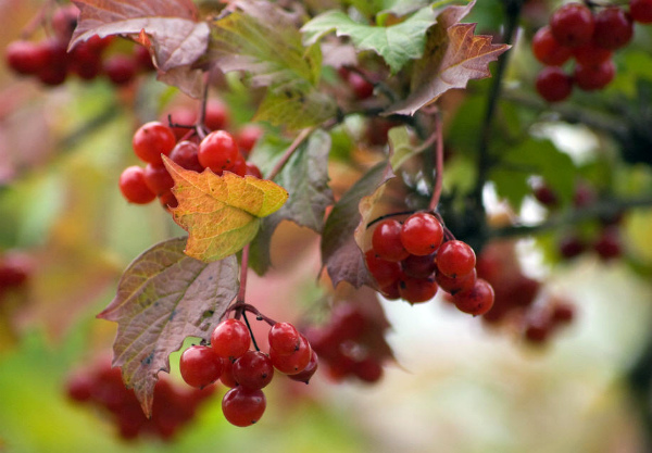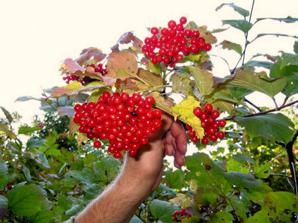 Arbuste érigé et tentaculaire qui pousse de 2 à 4 m de haut, aime les endroits humides et légèrement ombragés, pousse souvent le long des berges des rivières. Le vert élégant des feuilles à trois ou cinq lobes se détache magnifiquement sur les branches brun grisâtre. En mai - juin, le buisson est couvert de parapluies de fleurs blanches comme neige qui attirent les insectes avec leur arôme de miel, et août colore les baies en rouge.