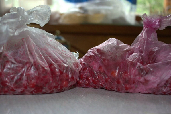 Pour la congélation, les baies sont généralement soigneusement coupées ou les tiges sont laissées, lavées (tout le monde ne le considère pas nécessaire), séchées, placées au congélateur, en remuant de temps en temps pour que les baies ne gèlent pas ensemble. Après la congélation, lorsqu'ils sont devenus durs et raides au toucher, ils sont placés dans un récipient pratique - des sacs ou des récipients, bien fermés et laissés au congélateur.