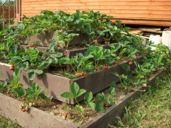 La forme de la structure peut être très diverse - ronde, carrée, triangulaire. En tant que base, nous considérerons les lits rectangulaires à plusieurs niveaux - ils sont plus faciles à construire et il sera plus facile de prendre soin des plantes. Il est recommandé d'orienter les parterres de fraises réguliers d'est en ouest - pour un éclairage uniforme tout au long de la journée. Cela vaut la peine de faire la même chose avec plusieurs niveaux.