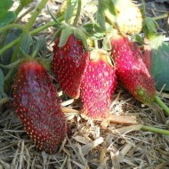 Les baies de marchand sont allongées, aplaties des deux côtés, de forme bizarre, avec des bifurcations et des processus divers aux extrémités. La couleur de la peau est rouge foncé. La taille varie: les plus grosses baies sont les premières, elles atteignent un poids de 17 à 20 g avec une longueur de 5 à 6 cm, les dernières sont petites, en moyenne 3 à 4 g. Goût de dessert et arôme de fraise avec une La teinte muscade est une carte de visite de la variété. Pour eux, la fraise a reçu la note de dégustation la plus élevée - 5 points.