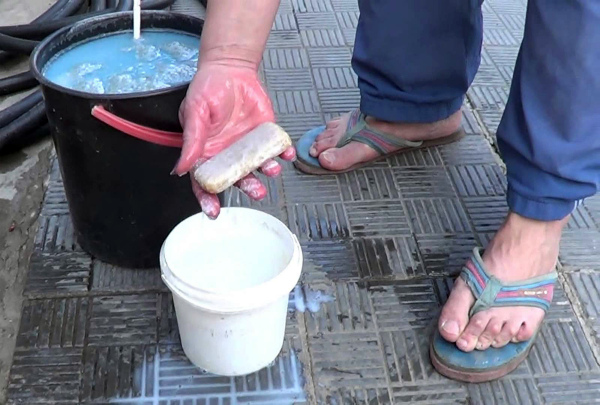 Afin de ne pas vous brûler, versez de l'eau dans les arrosoirs et arrosez abondamment chaque buisson, ainsi que le cercle près du tronc. Pour plus d'efficacité, vous pouvez ajouter 2 cuillères à soupe de permanganate de potassium à l'eau.